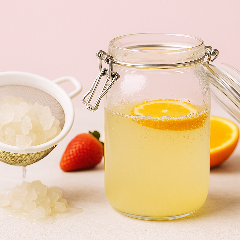 Je fermentovaný nápoj plný živých kultur, který vzniká pomocí kefírových zrn, cukru a vody. Je lehce perlivý, osvěžující a přirozeně obsahuje probiotika. Vhodný jako zdravější alternativa k přeslazené limonádě nebo pivu po sportu.