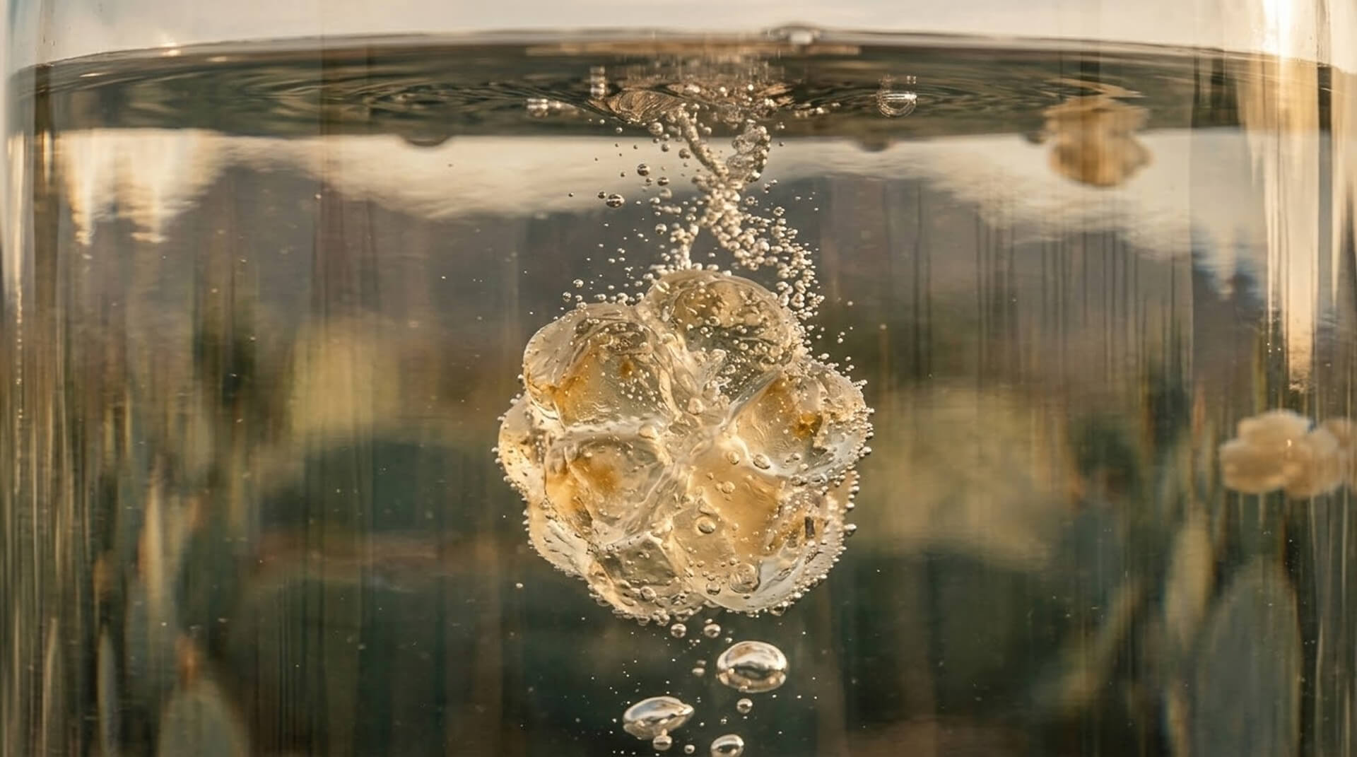 Mikrobi uvnitř přeměňují cukr ve vodě na jemně perlivý, lehce kyselý a probiotický nápoj.